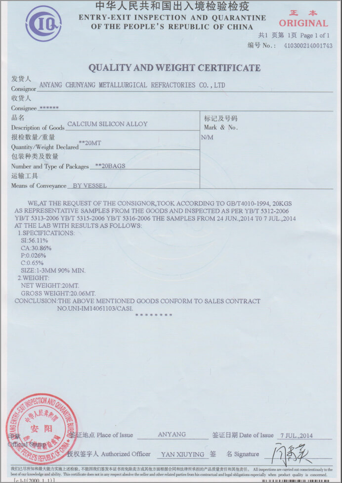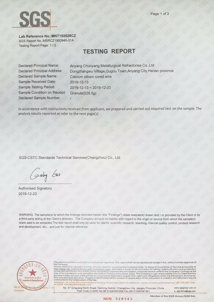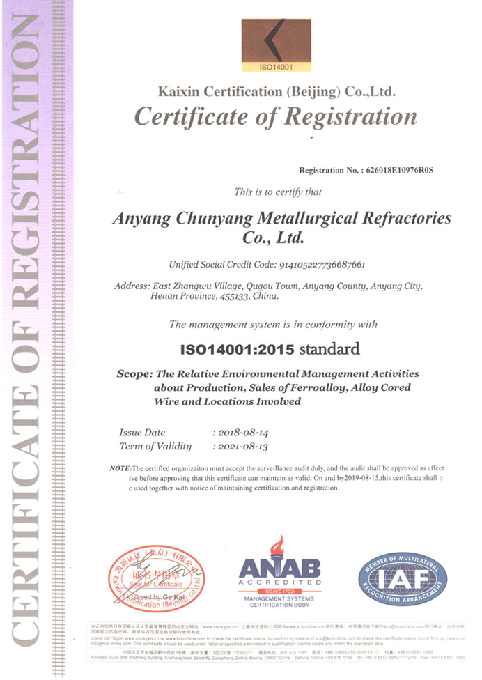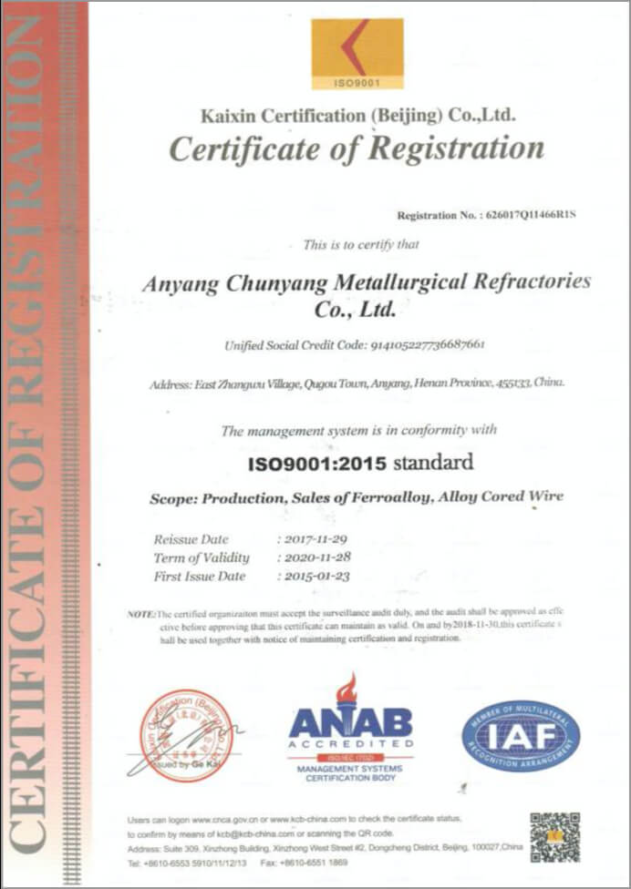 Anyang Chunyang metallurgy Co., Ltd. was located in Anyang City, China with convenient transportation. It is a large-sized production enterprise integrating research, development, production and sales. The company was founded in 2005,mainly producing and selling ferroalloy products such as calcium silicon alloy, alloy cored wire, rare earth silicon magnesium, silicon barium and other multi-element alloy.